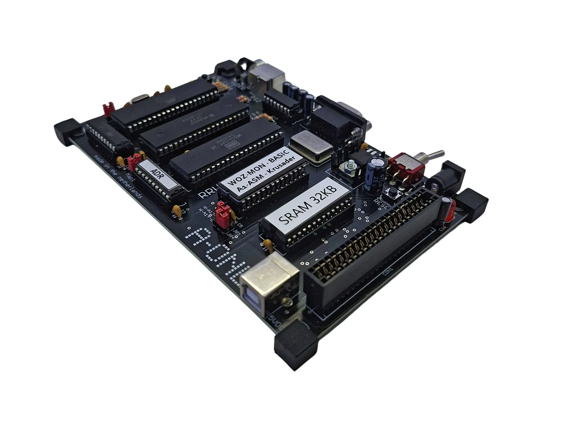 The A-ONE Extended Board takes the Apple-1 replica to the next level. In addition to the standard functionality, it includes an integrated breadboard area for experimenting with your own circuits and hardware expansions. This makes it the ideal choice for makers, students, and engineers who want to go beyond running classic Apple-1 software and start building their own hardware projects.